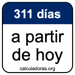 Note que hay muchas zonas horarias, y la fecha 311 días de hoy depende en dónde está. Por lo tanto, para calcular 311 días a partir de hoy, usamos el tiempo y la fecha de su computadora o móvil.