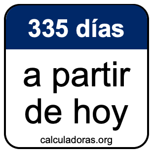 Note que hay muchas zonas horarias, y la fecha 335 días de hoy depende en dónde está. Por lo tanto, para calcular 335 días a partir de hoy, usamos el tiempo y la fecha de su computadora o móvil.