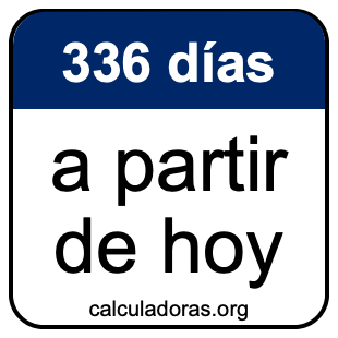 Note que hay muchas zonas horarias, y la fecha 336 días de hoy depende en dónde está. Por lo tanto, para calcular 336 días a partir de hoy, usamos el tiempo y la fecha de su computadora o móvil.