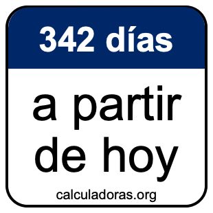 Note que hay muchas zonas horarias, y la fecha 342 días de hoy depende en dónde está. Por lo tanto, para calcular 342 días a partir de hoy, usamos el tiempo y la fecha de su computadora o móvil.