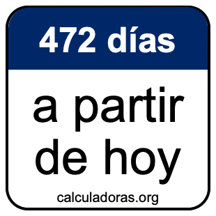 Note que hay muchas zonas horarias, y la fecha 472 días de hoy depende en dónde está. Por lo tanto, para calcular 472 días a partir de hoy, usamos el tiempo y la fecha de su computadora o móvil.