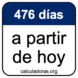 Note que hay muchas zonas horarias, y la fecha 476 días de hoy depende en dónde está. Por lo tanto, para calcular 476 días a partir de hoy, usamos el tiempo y la fecha de su computadora o móvil.