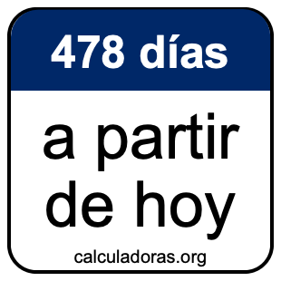 Aquí le diremos la fecha exactamente 478 días a partir de hoy. Más específicamente, le diremos el mes, día, y año 478 días desde hoy.