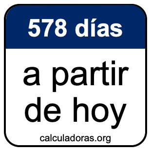 Aquí le diremos la fecha exactamente 578 días a partir de hoy. Más específicamente, le diremos el mes, día, y año 578 días desde hoy.