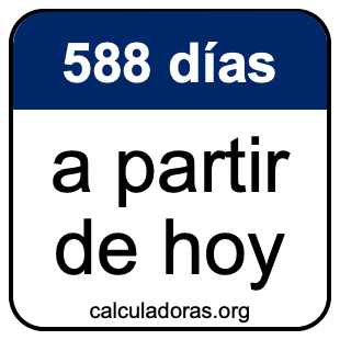 Note que hay muchas zonas horarias, y la fecha 588 días de hoy depende en dónde está. Por lo tanto, para calcular 588 días a partir de hoy, usamos el tiempo y la fecha de su computadora o móvil.