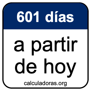 Note que hay muchas zonas horarias, y la fecha 601 días de hoy depende en dónde está. Por lo tanto, para calcular 601 días a partir de hoy, usamos el tiempo y la fecha de su computadora o móvil.