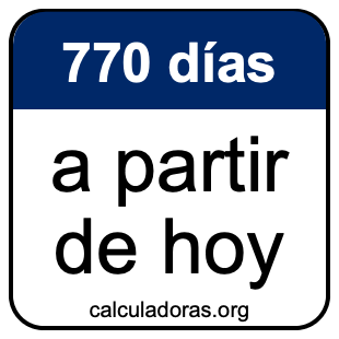 Note que hay muchas zonas horarias, y la fecha 770 días de hoy depende en dónde está. Por lo tanto, para calcular 770 días a partir de hoy, usamos el tiempo y la fecha de su computadora o móvil.