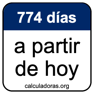 Note que hay muchas zonas horarias, y la fecha 774 días de hoy depende en dónde está. Por lo tanto, para calcular 774 días a partir de hoy, usamos el tiempo y la fecha de su computadora o móvil.