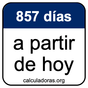 Note que hay muchas zonas horarias, y la fecha 857 días de hoy depende en dónde está. Por lo tanto, para calcular 857 días a partir de hoy, usamos el tiempo y la fecha de su computadora o móvil.