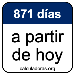 Note que hay muchas zonas horarias, y la fecha 871 días de hoy depende en dónde está. Por lo tanto, para calcular 871 días a partir de hoy, usamos el tiempo y la fecha de su computadora o móvil.